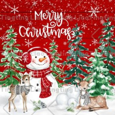 Christmas,Winter,Snowman,Christmas Tree,Deer,Snowflake,Red Woodcut