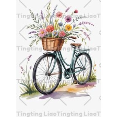 Bicycle,Bouquet,Fresh,Art,Hand-painted,Pastoral
