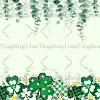 Saint Patrick's Day,Threeleaf Grass,Eucalyptus Leaves,Patches,Wavepoints,Light Green Background
