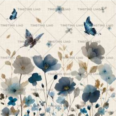 Spring,Flowers,Petals,Butterflies,Watercolors,Blue,Cotton Bottom