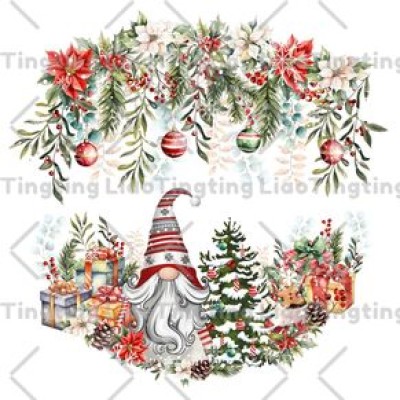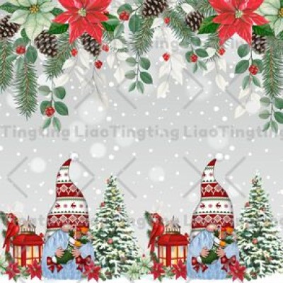 Winter,Christmas,Watercolor Style,Pine,Snowflake,Gnome,Berry,Chalet,Plaid