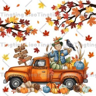 Thanksgiving,Autumn,Pumpkin,Maple Leaf,Thanksgiving Truck,Scarecrow,White Background