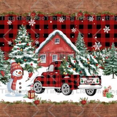 Christmas,Winter,Snowman,Christmas Tree,Truck,Farmhouse