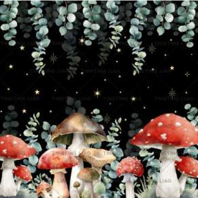 Mushrooms,Eucalyptus Trees,Plants,Stars,Black Background