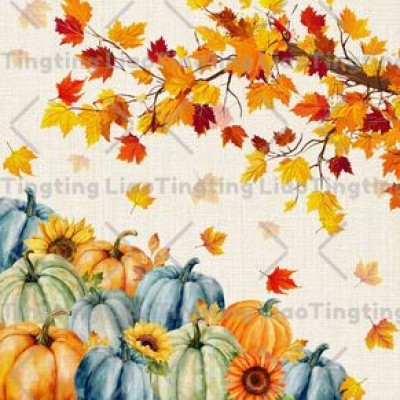 Autumn,Thanksgiving,Blue Orange Green Pumpkin,Sunflower,Maple Leaf,Vintage,Farm,Farmhouse