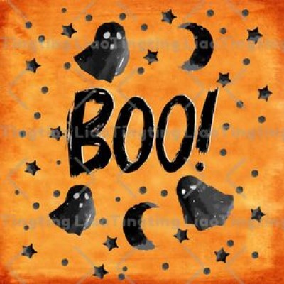 Halloween,Ghosts,Full Moon Night,Stars,Orange Background BOO!