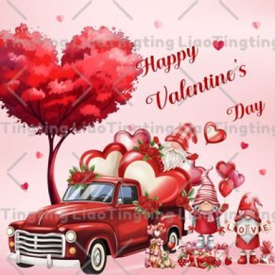 Valentine's Day,Love,Red,Car,Pink,White Woodcut