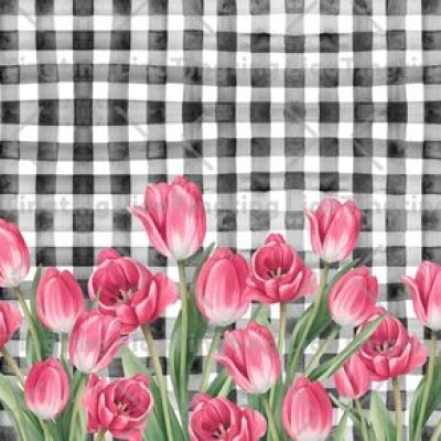 Spring,Summer,Flowers,Tulips,Pink,Farmhouses,Countryside,Black And White Gauze