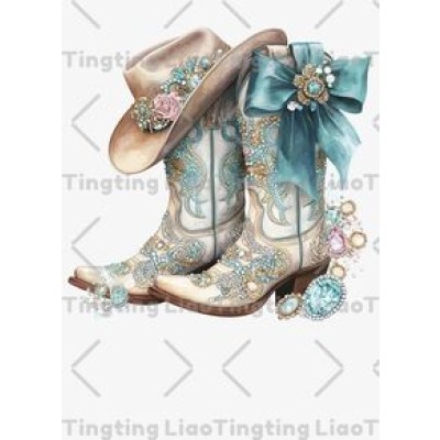 Cowboy Boots,Gorgeous Decoration,Western Fashion,Vintage Illustration,