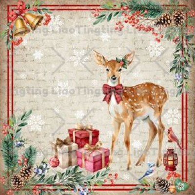 Christmas,Deer,Sparrows,Cardinals,Gifts,Plants,Berries,Bells,Snowflakes,Letters
