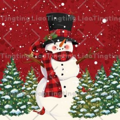 Christmas,Winter,Snowman,Snowflakes,Pine Trees,Art
