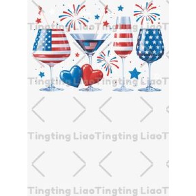 American Flag Element,Wine Glass,Fireworks,Stars,Love,Celebration,Independence Day