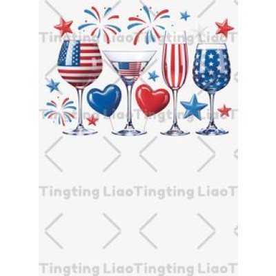 American Flag Element,Wine Glass,Fireworks,Stars,Love,Celebration,Independence Day