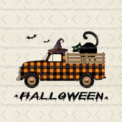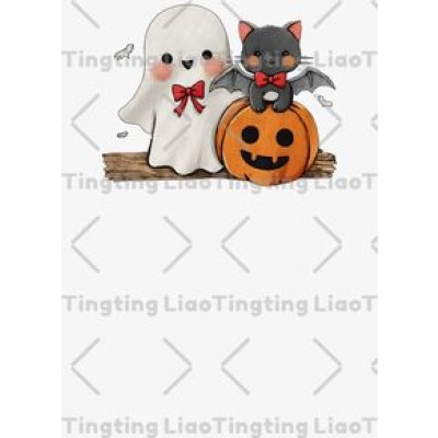 Cartoon,Halloween,Kitten,Ghost,Pumpkin,Bat,Bow,Wood