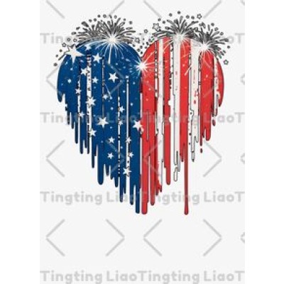 Heart,American Flag Element,Drip Effect,Fireworks,Stars,Patriotic,Decorative,Art,Colors,Independence Day
