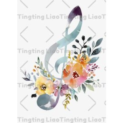 Musical Notes,Watercolor Flowers,Artistic Romance