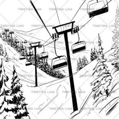 Abstract,Hand-drawn,Mountains,Cable Cars,Trees,Modern
