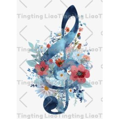 Musical Notes,Watercolor Flowers,Artistic Romance