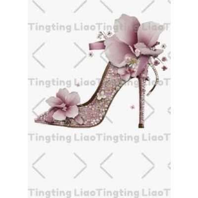 Pink High Heels Shoes,Butterflies,Flowers,Pearls,Romantic Sweetness