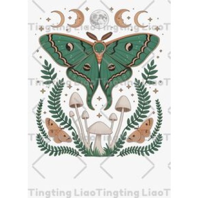 Moth,Mushroom,Plant,Moon Phase,Stars,Illustration,Nature,Mysterious