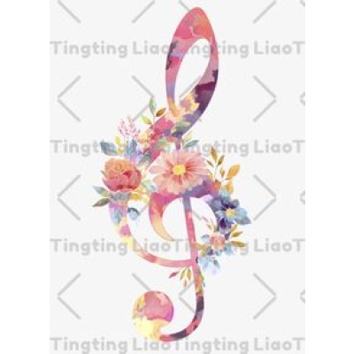 Musical Notes,Watercolor Flowers,Artistic Romance