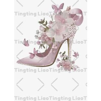 Pink High Heels Shoes,Butterflies,Flowers,Pearls,Romantic Sweetness