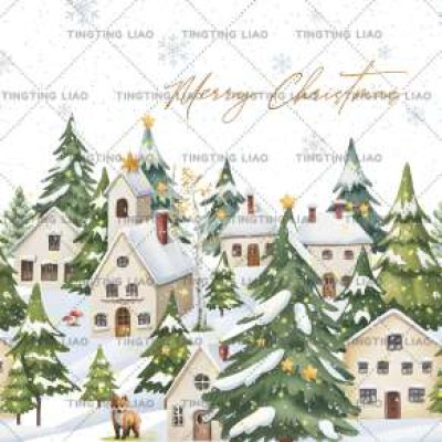 Christmas,Christmas Tree,Snowflake,House,Watercolor