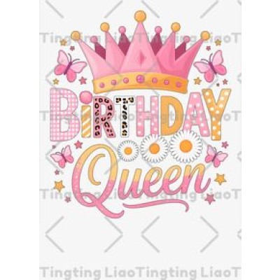 Birthday Queen,Crown,Butterfly,Stars,Flowers,Pink,Celebration,Decoration,Art,Cute