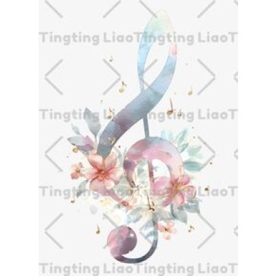 Musical Notes,Watercolor Flowers,Artistic Romance