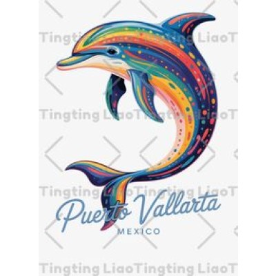 Dolphin,Color,Illustration,Puerto Vallarta,Mexico,