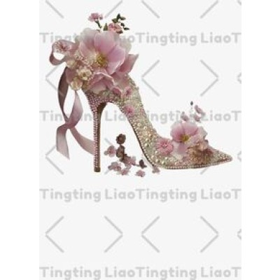 Pink High Heels Shoes,Butterflies,Flowers,Pearls,Romantic Sweetness