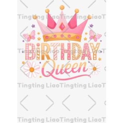 Birthday Queen,Crown,Butterfly,Stars,Flowers,Pink,Celebration,Decoration,Art,Cute
