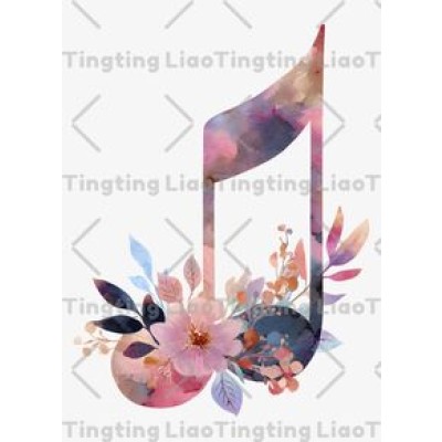 Musical Notes,Watercolor Flowers,Artistic Romance