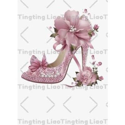 Pink High Heels Shoes,Butterflies,Flowers,Pearls,Romantic Sweetness