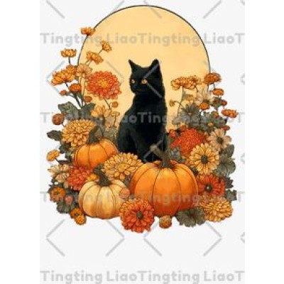 Black Cat,Autumn,Pumpkin,Flowers,Fantasy