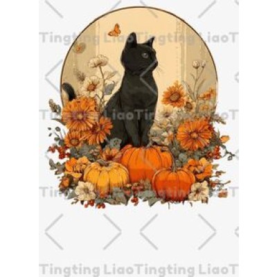 Black Cat,Autumn,Pumpkin,Flowers,Fantasy