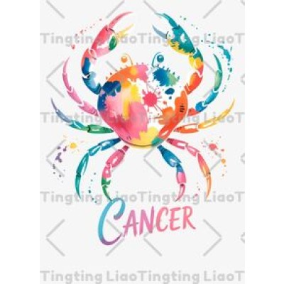 Cancer,Crab,Watercolor,Colorful,Constellation,Illustration,Art,Decoration,Drip Effect,Cute