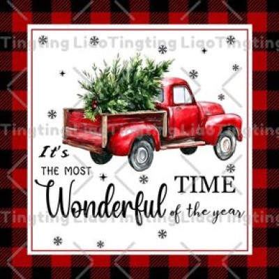 Christmas,Winter,Farm,Red Car,Christmas Tree,Snowflake,Red Plaid IT'S,THE,MOST,WONDERFUL,TIME,OF,THE,YEAR