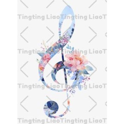 Musical Notes,Watercolor Flowers,Artistic Romance