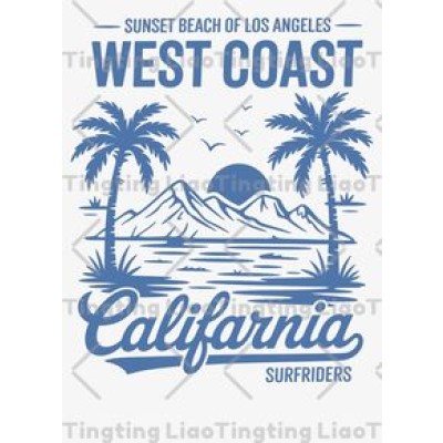 Los Angeles,Sunset Beach,West Coast,California,Palm Trees,Mountains,Ocean,Retro