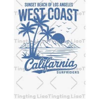 Los Angeles,Sunset Beach,West Coast,California,Palm Trees,Mountains,Ocean,Retro