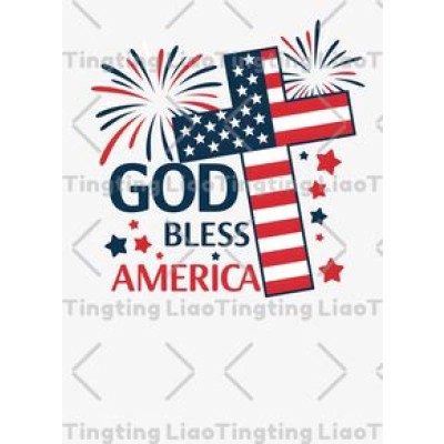 American Flag Element,Cross,Fireworks,"GOD BLESS AMERICA," Patriotism,Religion,Decoration,Art,Color,Celebration