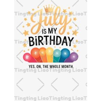 July Birthday,"July Is My Birthday," Crown,Stars,Fireworks,Celebration