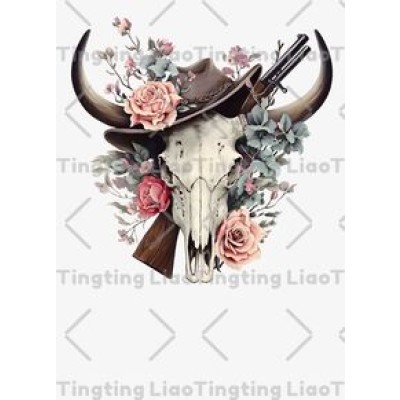 Cow Skulls,Cowboys,Western Style,Hunting Guns,Floral