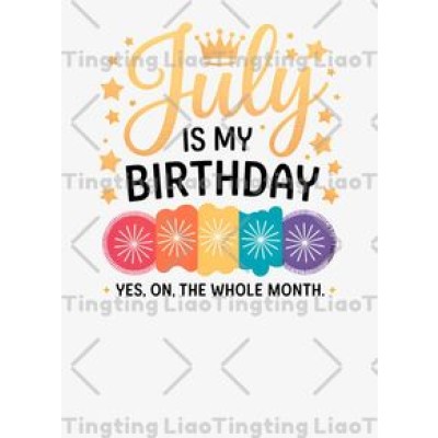July Birthday,"July Is My Birthday," Crown,Stars,Fireworks,Celebration