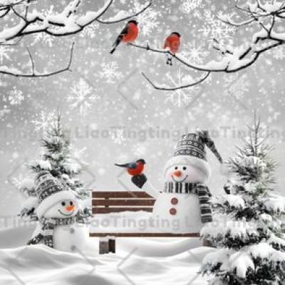 Christmas,Winter,Christmas Tree,Snowman,Snowflake,Red Robin