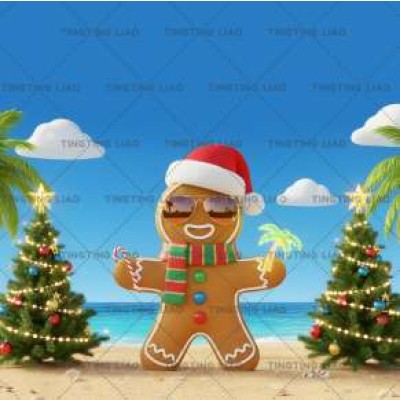 Christmas,Ginger Bread Man,Christmas Tree,Sandy Beach,Art,Decoration