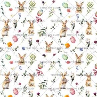 Easter,Rabbits,Colored Eggs,Leaves,Flowers