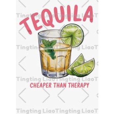 Tequila,Lime,Mint,Glass,Text "CHEAPER THAN THERAPY," Cocktail,Casual