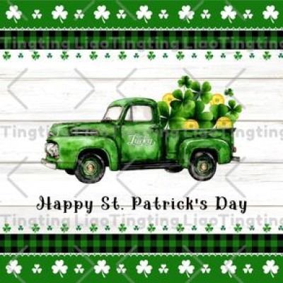 St. Patrick's Day,Threeleaf Grasses,Gold Coins,Green Trucks,Woodcuts